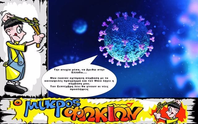 Άνεργος θα μείνει για άλλο ένα καλοκαίρι ο κορονοϊός που η τύχη τον έφερε να ζήσει στην Ελλάδα. Ενώ σε όλες τις χώρες ο κορονοϊός υπάρχει όλο το έτος στην Ελλάδα είναι με οχτάμηνη σύμβαση και μάλιστα μέσω των κοινωφελών προγραμμάτων.