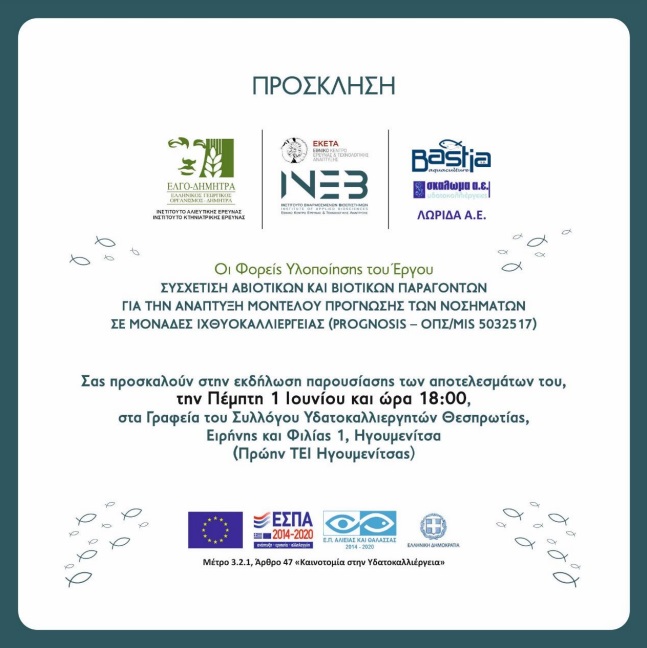Αρχική » Πρόσκληση παρουσίασης αποτελεσμάτων έργου Prognosis σε μονάδες ιχθυοκαλλιέργειας