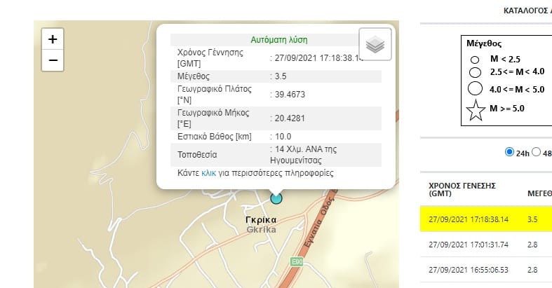 Σεισμική δόνηση σημειώθηκε στις 08:18 με επίκεντρο την Γκρίκα και μέγεθος 3,5R. Το εστιακό βάθος ήταν 10 χλμ.
