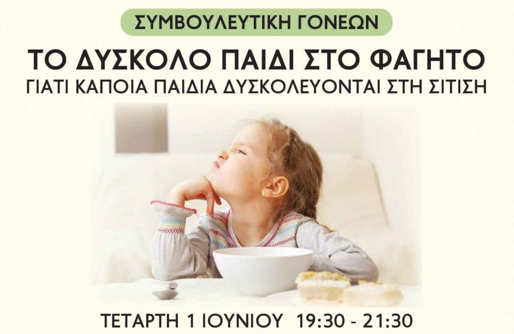 «Συμβουλευτική γονέων. Το δύσκολο παιδί στο φαγητό. Γιατί κάποια παιδιά δυσκολεύονται στη σίτιση», 01/06/2022
