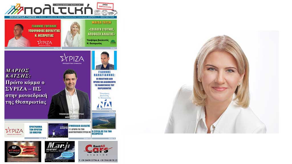 Το άρθρο της υποψήφιας με το ΠΑΣΟΚ στην Θεσπρωτία, Μάγδας Τάτση, δημοσιεύθηκε στην εφημερίδα ΠΟΛΙΤΙΚΗ