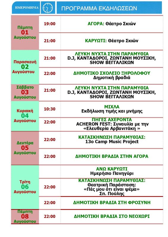 Αρχική » Δείτε το πρόγραμμα των καλοκαιρινών εκδηλώσεων στον δήμο Σουλίου
