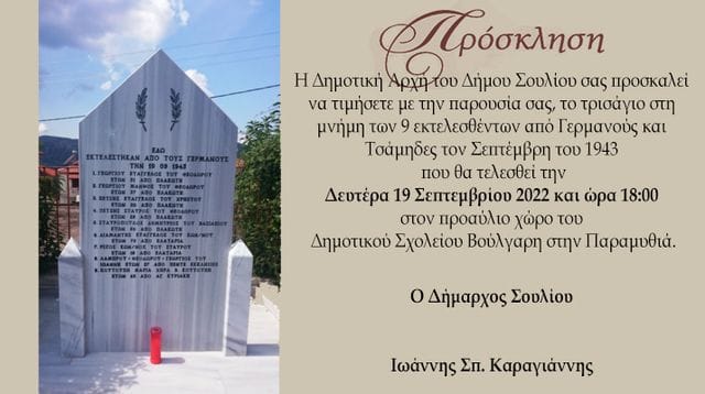 Αρχική » Ετήσιο τρισάγιο στη μνήμη των 9 εκτελεσθέντων από Γερμανούς και Τσάμηδες τον Σεπτέμβρη του 1943