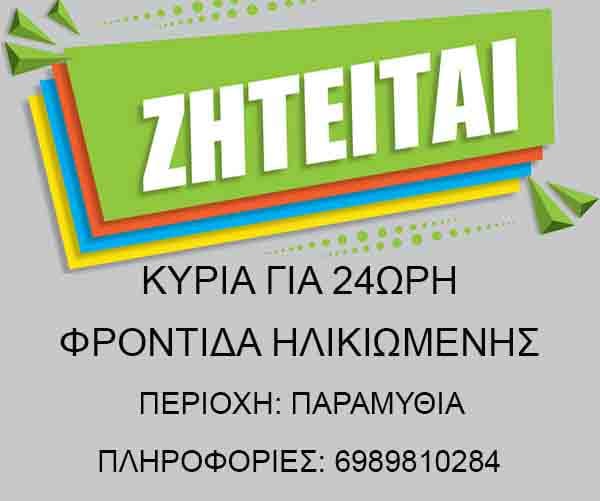 Ζητείται κυρία για 24ωρη φροντίδα ηλικιωμένης στην Παραμυθιά