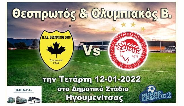 Η ΠΑΕ Θεσπρωτός συνεχίζοντας τις βραβεύσεις ομάδων και ποδοσφαιριστών που έχουν δοξάσει το ελληνικό ποδόσφαιρο, την Τετάρτη 12 Ιανουαρίου 2022 θα τιμήσει τον πρωταθλητή και πρωτοπόρο της Σούπερ Λίγκας, Ολυμπιακό, με την ευκαιρία της εντός έδρας αναμέτρησης με την Β’ ομάδα των ‘ερυθρολεύκων’ στο πλαίσιο της 13ης αγωνιστικής του Πρωταθλήματος Betsson Super League 2.