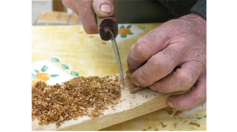 Ο πατέρας κάθε βράδυ που επέστρεφε στο σπίτι από το μαστραλίκι, τρόχιζε καλά την κολοκωτρόνα σουγιά, έπαιρνε την ειδική μικρή σανίδα και ψιλόκοβε σιγά και πολύ προσεκτικά τα φύλλα του καπνού. ΄Υστερα, αφού τον κομμένο καπνό τον έβαζε μέσα στη ταμπακιέρα, τον έκανε την άλλη ημέρα τσιγάρα με ειδικό τσιγαρόχαρτο.