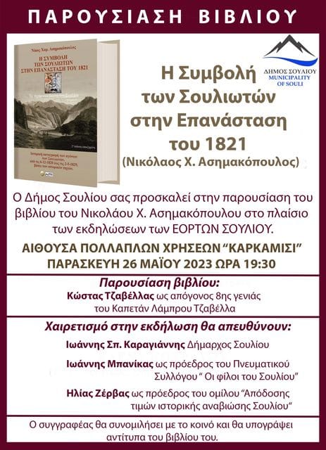 Αρχική » Παρουσίαση του βιβλίου “Η Συμβολή των Σουλιωτών στην Επανάσταση του 1821”