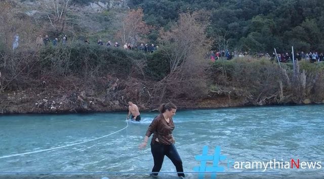 Στον παγωμένο Αχέροντα βούτηξαν δύο άτομα, ένας άντρας και μία γυναίκα.