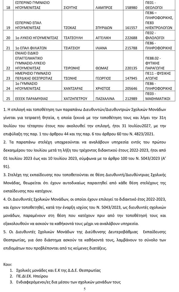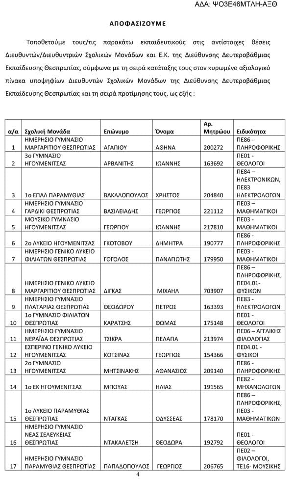 Αρχική » Ποιοι επιλέχθηκαν για διευθυντές στην δευτεροβάθμια εκπαίδευση στην Θεσπρωτία