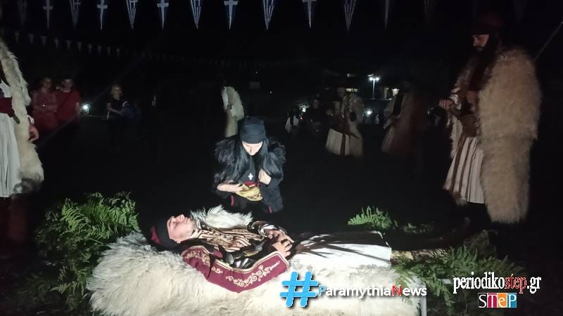 Ακολούθησε η λαμπαδηφορία και τα πύρινα μονοπάτια και το δρώμενο “Κηδεία του Μάρκου Μπότσαρη”.