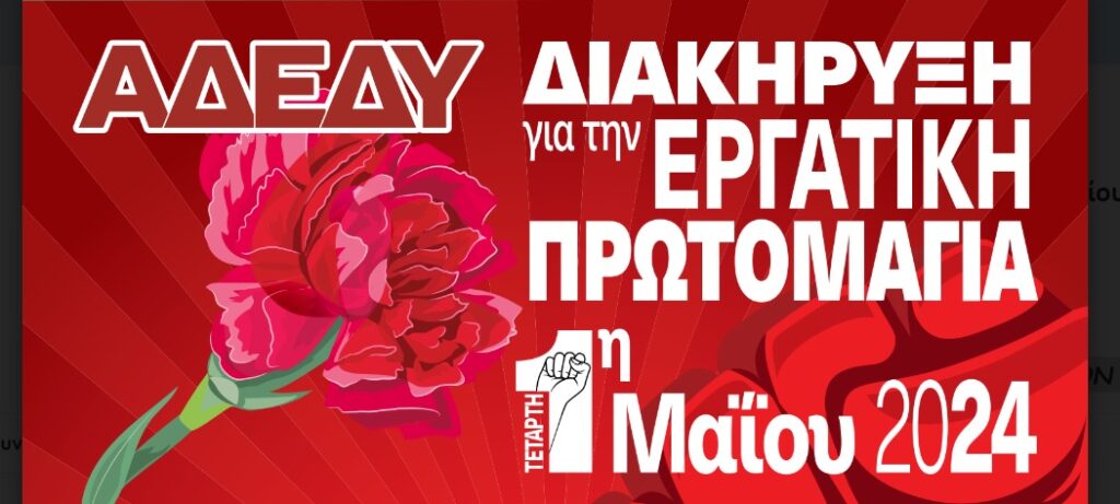 ΟΛΟΙ στην απεργία της Πρωτομαγιάς και στην απεργιακή συγκέντρωση Πλ. Δημαρχείου στις 10:30 το πρωί
