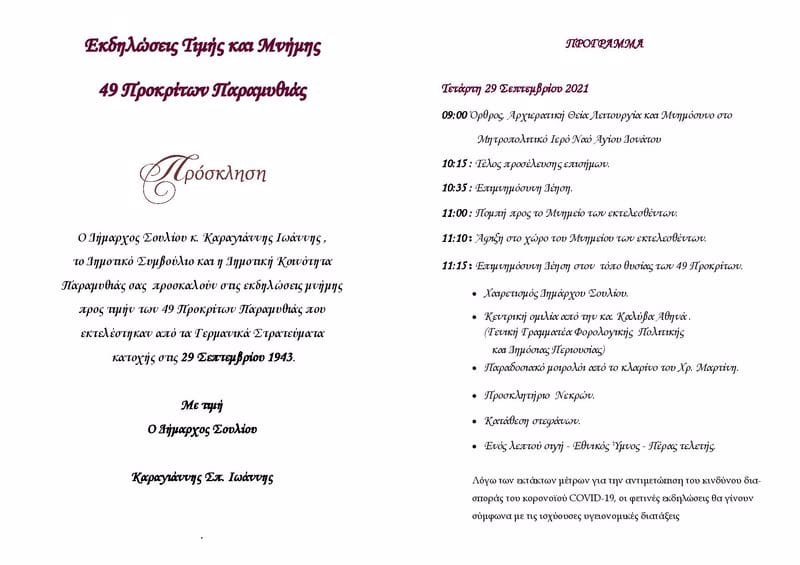 Αρχική » Το πρόγραμμα Εκδηλώσεων Τιμής και Μνήμης 49 Προκρίτων Παραμυθιάς