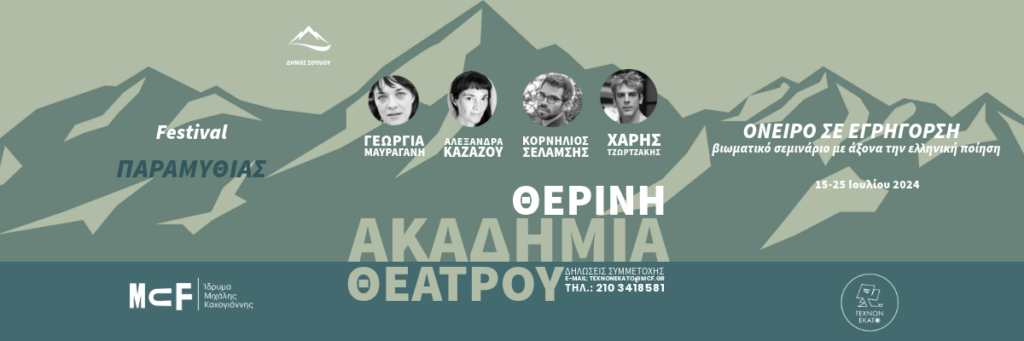 Ο Δήμος Σουλίου, το Ίδρυμα Μιχάλης Κακογιάννης και η Σχολή Θεάτρου “ΤΕΧΝΩΝ ΕΚΑΤΟ” σας προσκαλούν στην 1η θερινή ακαδημία θεάτρου του Φεστιβάλ Παραμυθιάς με τίτλο “Όνειρο σε εγρήγορση”.