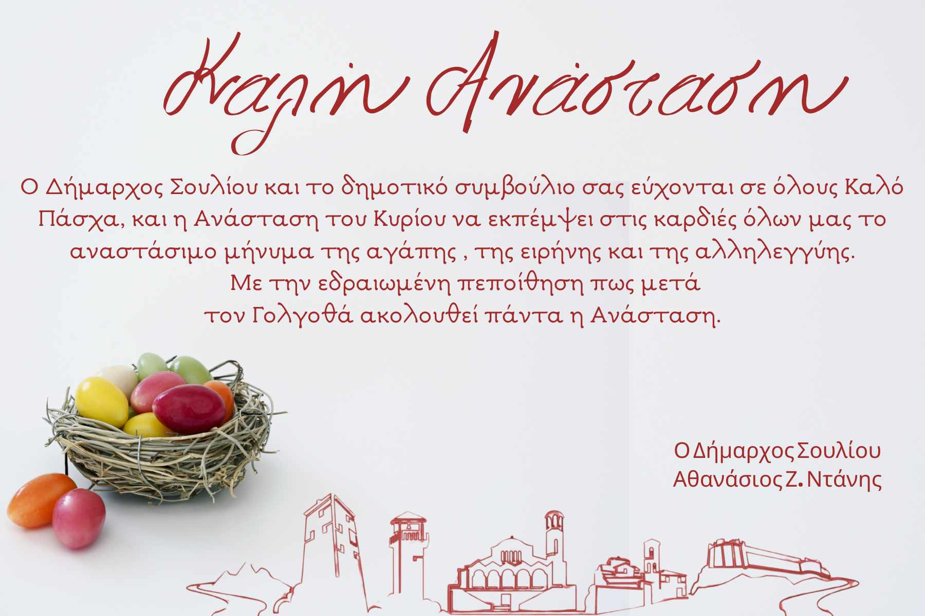 Ευχές από τον δήμαρχο Σουλίου για το Πάσχα