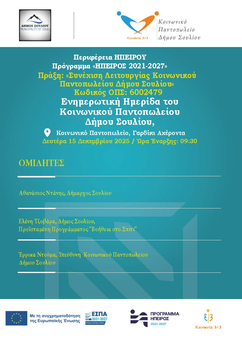 Κλειστός ο Δήμος Σουλίου την Τρίτη 16 Δεκεμβρίου Ο Δήμος Σουλίου ενημερώνει τους πολίτες ότι συμμετέχει στην πανελλαδική κινητοποίηση της…