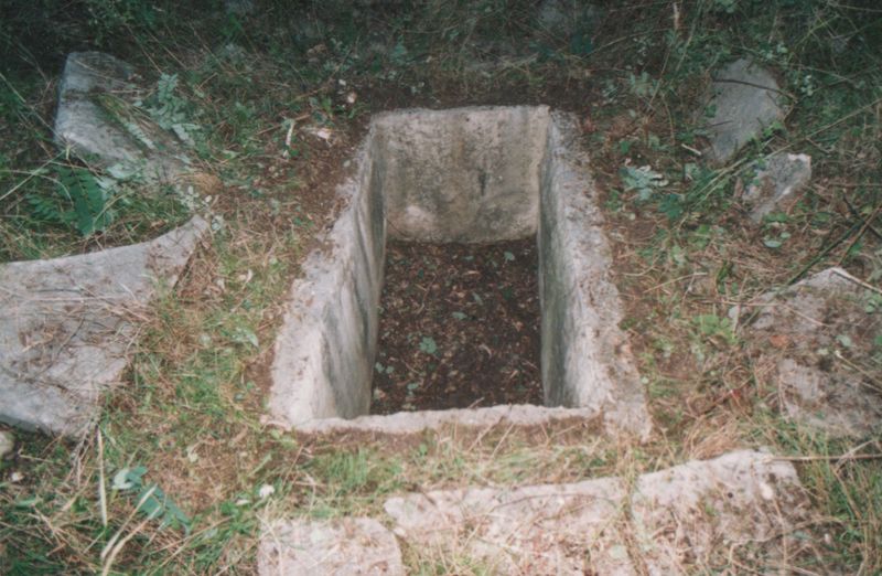 « Ένας τάφος κιβωτιόσχημος με πλάκες χοντρές και εσωτερικές, διαστάσεις 1.90 Χ 1.02 μ., ύψος 0,64 μ.,  βρίσκεται δυτικά του ναού ( σ.σ. εννοεί τον  Άγιο Νικόλαο της Άνω Βέλλιανης) »