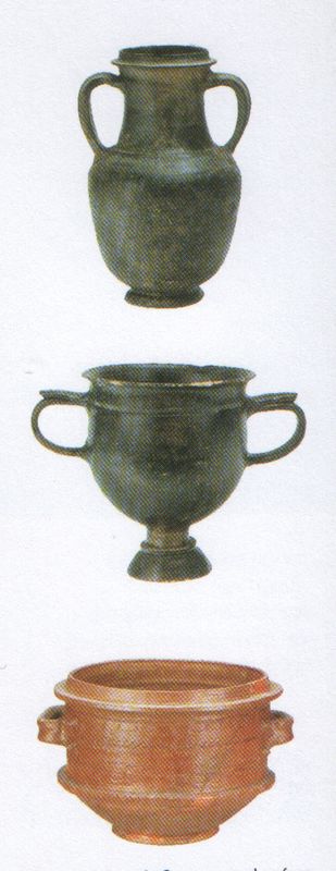 Αμφορέας, κάνθαρος, και λεκάνηαπό τον κιβωτιόσχημο τάφο στην αυλή   του  Δημοτικού σχολείου Χρυσαυγής.