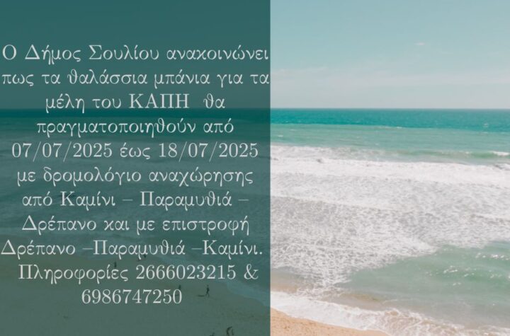 Ο Δήμος Σουλίου ενημερώνει ότι στο πλαίσιο των μέτρων που λαμβάνει για την προστασία...