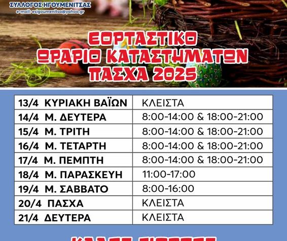 Εορταστικό ωράριο καταστημάτων Ηγουμενίτσας