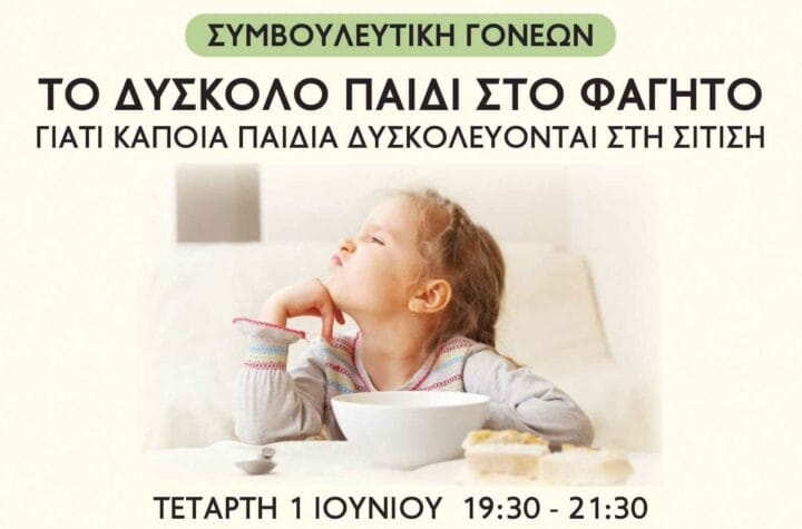 «Συμβουλευτική γονέων. Το δύσκολο παιδί στο φαγητό. Γιατί κάποια παιδιά δυσκολεύονται στη σίτιση», 01/06/2022...