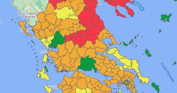 Στο επίπεδο 3, στο πορτοκαλί δηλαδή, συνεχίζει να βρίσκεται η Θεσπρωτία στον χάρτη του...