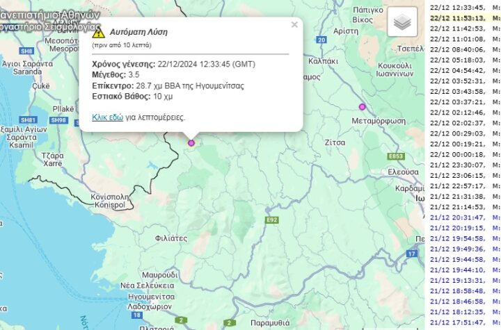 Σεισμική δόνηση έγινε αισθητή στην Θεσπρωτία στις 2:33μμ Ο σεισμός είχε επίκεντρο περιοχή των...