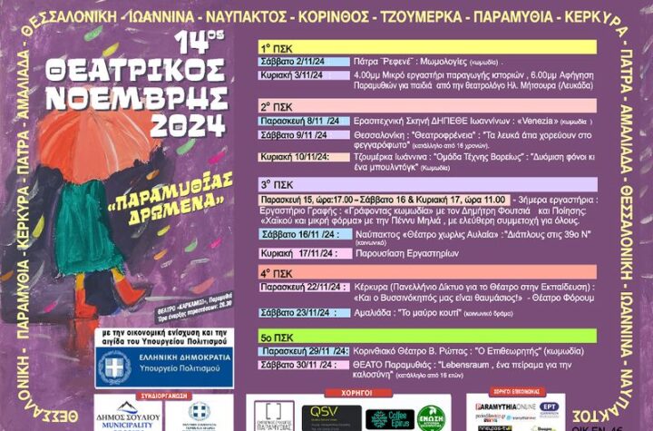 Έναρξη του 14ου Θεατρικού Νοέμβρη «Παραμυθίας Δρώμενα» Ξεκινάει το υπέροχο πολιτιστικό ταξίδι του Θεατρικού...