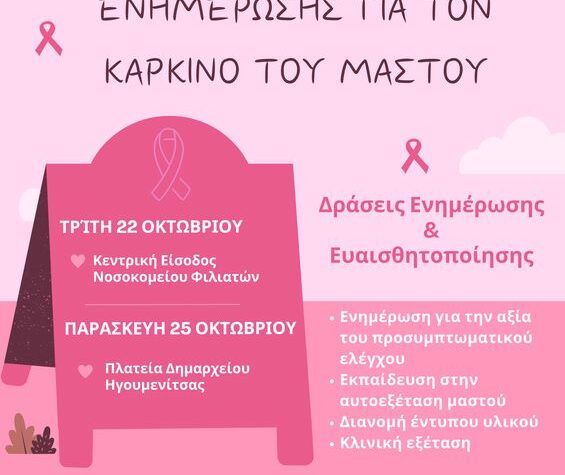 ΔΕΛΤΙΟ ΤΥΠΟΥ Υλοποίηση δράσεων για την «Πρόληψη του καρκίνου του μαστού» Σας ενημερώνουμε, ότι...