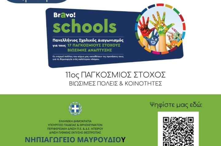 «Ψηφίστε το Νηπιαγωγείο Μαυρουδίου στον Διαγωνισμό BRAVO SCHOOLS 2022» Το Νηπιαγωγείο Μαυρουδίου Θεσπρωτίας συμμετέχει...