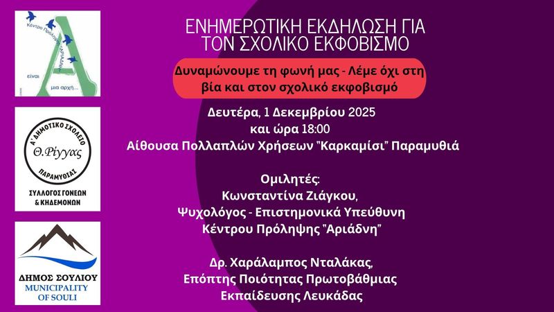 Εκδήλωση για τον σχολικό εκφοβισμό στην Παραμυθιά