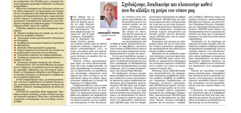 Άρθρο του δημάρχου Σουλίου Θανάση Ντάνη στην εφημερίδα “Το παρόν”