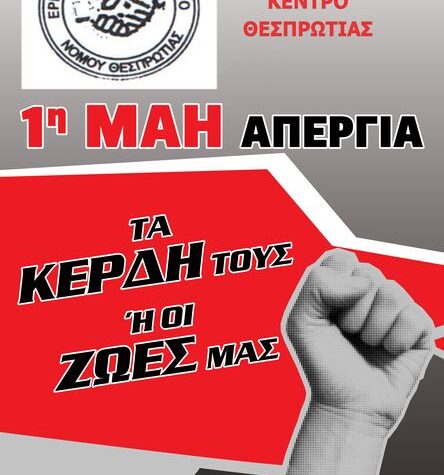 Εργατικό Κέντρο Θεσπρωτίας ΟΛΟΙ ΣΤΗΝ ΑΠΕΡΓΙΑ ΤΗΝ 1η ΜΑΗ! 130 χρόνια από την Πρωτομαγιά...