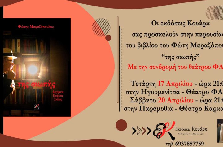 Δελτίο τύπου Οι εκδόσεις Κουάρκ σας προσκαλούν στην παρουσίαση του βιβλίου του Φώτη Μαραζόπουλου...