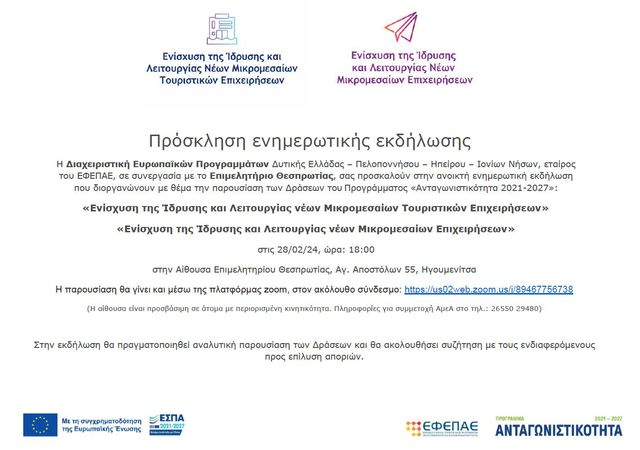 ΔΕΛΤΙΟ ΤΥΠΟΥ Πρόσκληση σε ενημερωτική εκδήλωση για τις νέες δράσεις του Προγράμματος «Ανταγωνιστικότητα 2021-2027»...