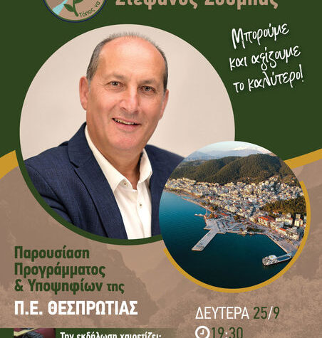 «Παρουσίαση Προγράμματος και Υποψηφίων Π.Ε. Θεσπρωτίας της Παράταξης Ήπειρος ΟΛΟΝ – «Τόπος να ζεις»...