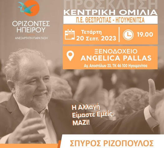 Στις 20 Σεπτεμβρίου η κεντρική ομιλία του Σπύρου Ριζόπουλου στην Ηγουμενίτσα Στις 20 Σεπτεμβρίου...