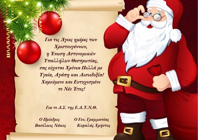 ΜΗΝΥΜΑ ΤΟΥ ΑΝΤΙΠΕΡΙΦΕΡΕΙΑΡΧΗ ΘΕΣΠΡΩΤΙΑΣ ΘΩΜΑ Γ. ΠΙΤΟΥΛΗ ΓΙΑ ΤΑ ΧΡΙΣΤΟΥΓΕΝΝΑ ΚΑΙ ΤΗΝ ΠΡΩΤΟΧΡΟΝΙΑ. Η...