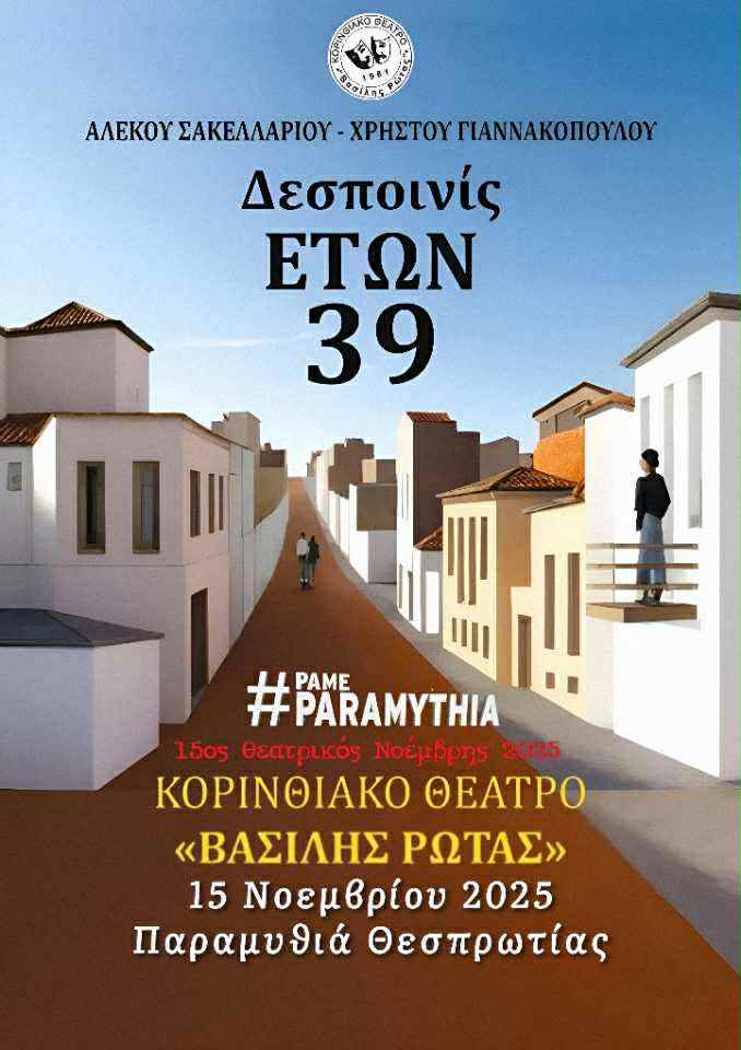– Σάββατο 15/11 , ώρα : 8.30 ,Θ.Ο. Κορίνθου “Δεσποινίς ετών 39” (κωμωδία)