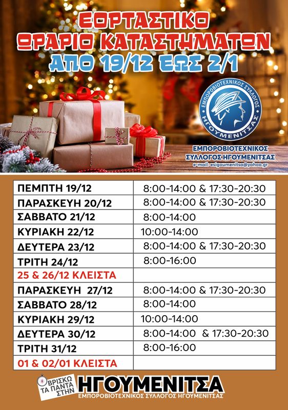 Αρχική » Προσαρμογή ωραρίου καταστημάτων για τις γιορτές