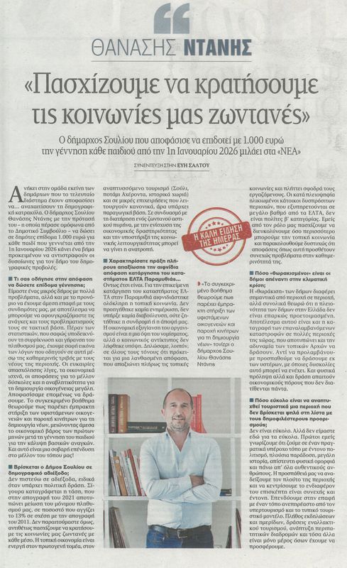 Nέα από δήμο Σουλίου – Θεσπρωτία – Ήπειρο