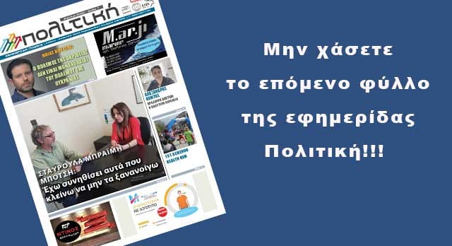 Κυκλοφορεί την Μεγάλη Εβδομάδα η εφημερίδα Πολιτική. Μην την χάσετε!!! Συνέντευξη της Σταυρούλας Μπραΐμη...