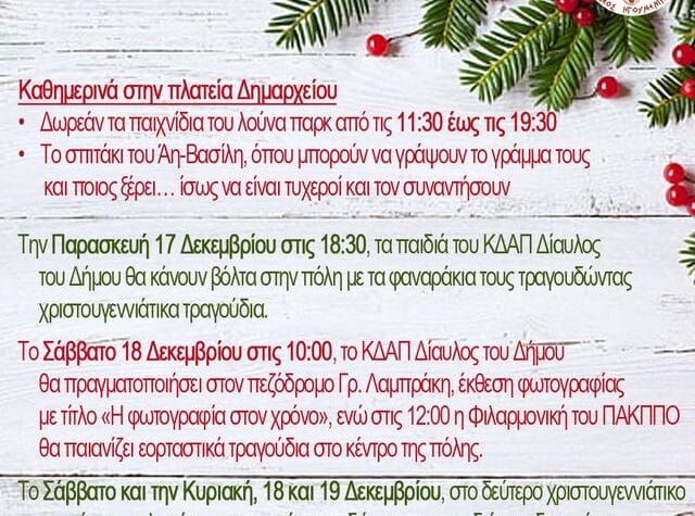 Το ΠΑΚΠΠΟ Δήμου Ηγουμενίτσας συνδιοργανώνουν μαζί με την ΑΜΚΕ «ΑΒΓΟ» μια σειρά χριστουγεννιάτικων εκδηλώσεων...