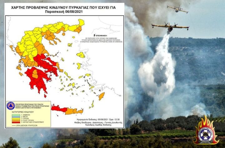 Σύμφωνα με το Χάρτη Πρόβλεψης Κινδύνου Πυρκαγιάς, που εκδίδει η Γενική Γραμματεία Πολιτικής Προστασίας,...